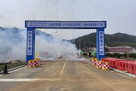 2月22日公司中標(biāo)承建的皖鄂通道(太平大橋至祝家灣段)公路水毀修復(fù)提升工程項目開工,太平畈鄉(xiāng)鄉(xiāng)長汪俏、人大主席吳園忠參加開工典禮。