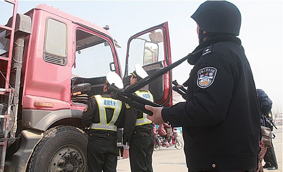 公路治超一直具有“硬碰硬”性質(zhì),六安市為配合312國道治超,出動防暴隊員,攜帶防暴槍械配合公路、運管等部門聯(lián)合治超。記者1月4日上午趕赴現(xiàn)場,目睹在我省尚屬首次的防暴隊帶槍護衛(wèi)治超行動。