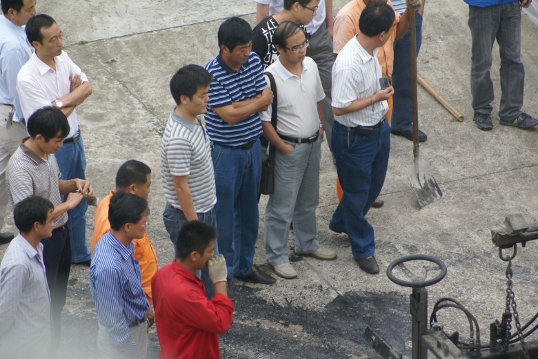 2010年9月10日上午10時,梅山路“白”加“黑”改造工程的業(yè)主,六安市建委副主任曹德林、總工周培勇攜本項目監(jiān)理單位和設(shè)計單位主要領(lǐng)導蒞臨我公司視察,檢查梅山路瀝青砼路面施工準備情況,并作出進一步的要求和指示,公司董事長兼總經(jīng)理萬世林同志率公司各部門全程陪同。