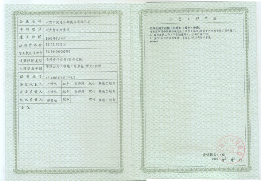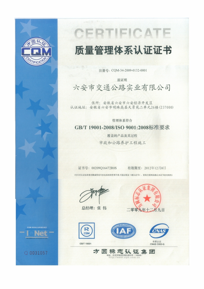 公司取得ISO9001認(rèn)證及市政總承包三級(jí)資質(zhì)